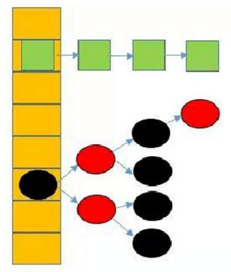 Java8中,当同一个hash值的节点数不小于8时,将不再以单链表的形式存储了,会被调整成一颗红黑树。这就是JDK 7与JDK 8中HashMap实现的最大区别。