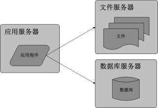 应用和数据分离后整个网站使用三台服务器:应用服务器、文件服务器和数据库服务器: