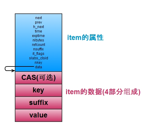 每一个key-value对都存储在一个item结构中,包含了相关的属性和key和value的值。