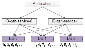 如上图所述,由1个写库变成3个写库,每个写库设置不同的auto_increment初始值,以及相同的增长步长,以保证每个数据库生成的ID是不同的。