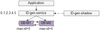 如上图所述,数据库使用双master保证可用性,数据库中只存储当前ID的最大值,例如0。ID生成服务假设每次批量拉取6个ID,服务访问数据库,将当前ID的最大值修改为5,这样应用访问ID生成服务索要ID,ID生成服务不需要每次访问数据库,就能依次派发0,1,2,3,4,5这些ID了,当ID发完后,再将ID的最大值修改为11,就能再次派发6,7,8,9,10,11这些ID了,于是数据库的压力就降低到原来的1/6了。