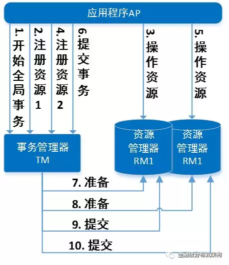 XA 协议描述了 TM 与 RM 之间的接口,允许多个资源在同一分布式事务中访问。