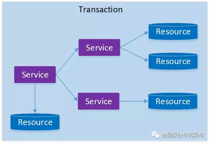 架构服务化以后,事务的概念延伸到了服务中。倘若将一个单一的服务操作作为一个事务,那么整个服务操作只能涉及一个单一的数据库资源: