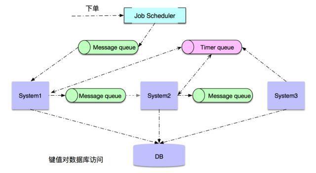 第三代是对于第二代的升级,订单的状态流转不再依靠高频查询数据库来获得,通过队列模式,很好减轻了数据库的压力,但是第三代依然有问题,就是该系统中server2成了核心,该模块的维护就会变得很复杂,这也是架构设计的关键,没有完全的完美架构,只能得到一个平衡架构。