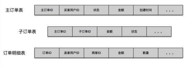 订单数据主要由三张数据库表组成,主订单表对应的就是用户的一个订单,每提交一次都会生成一条主订单表的数据。在有些情况下,用户可能在一个订单中选择不同卖家的商品,而每个卖家又会按照该订单中自己提供的商品计算相关的商品优惠(如满100元减10元)以及按照不同的收货地址设置不同的物流配送,所以会出现子订单的相关概念,即一个主订单会由多个子订单组成,而真正对应到具体每个商品订单信息,则保存在订单详情表中。