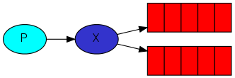 生产者将消息发送到Exchange(交换器,下图中的X),由Exchange将消息路由到一个或多个Queue中(或者丢弃)。