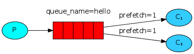 RabbitMQ中的消息都只能存储在Queue中,生产者(下图中的P)生产消息并最终投递到Queue中,消费者(下图中的C)可以从Queue中获取消息并消费。