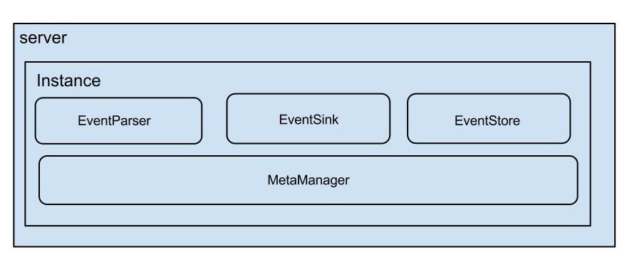 instance代表了一个实际运行的数据队列,包括了EventPaser,EventSink,EventStore等组件。