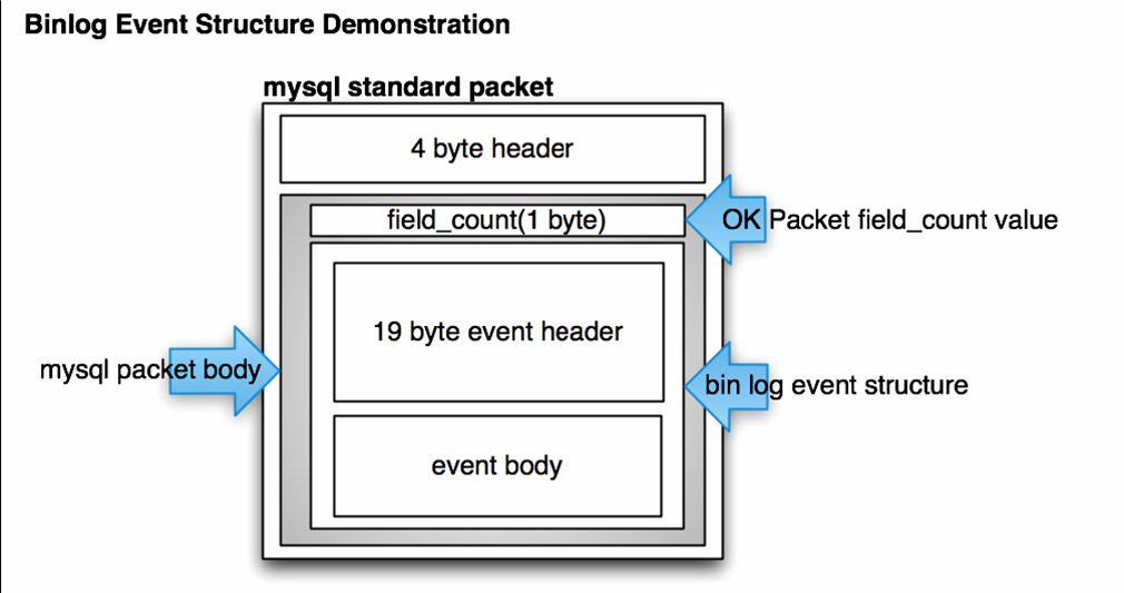- 图中的协议4byte header,主要是描述整个binlog网络包的length