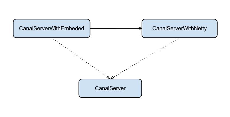 server代表了一个canal的运行实例,为了方便组件化使用,特意抽象了Embeded(嵌入式) / Netty(网络访问)的两种实现