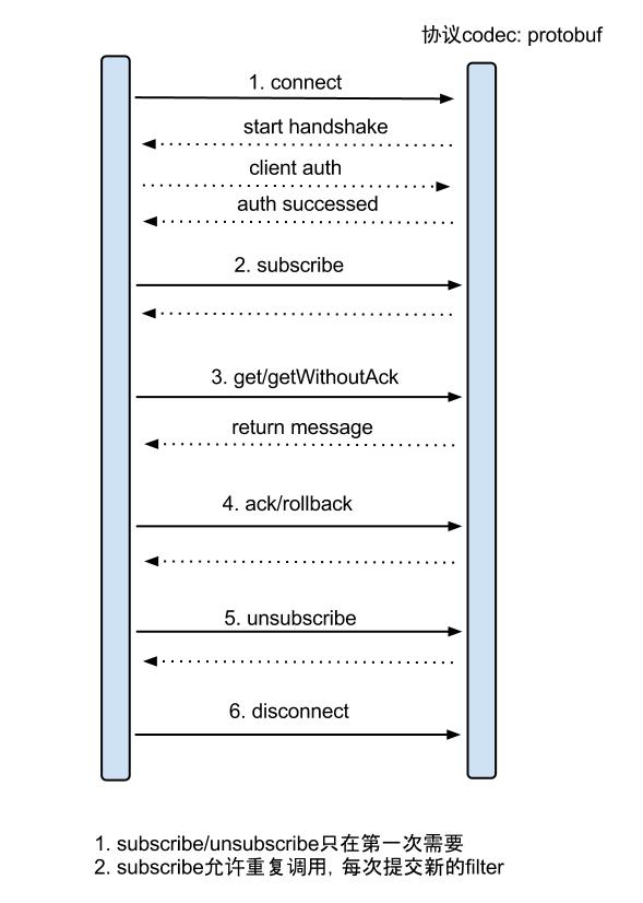 canal的get/ack/rollback协议和常规的jms协议有所不同,允许get/ack异步处理,比如可以连续调用get多次,后续异步按顺序提交ack/rollback,项目中称之为流式api。
