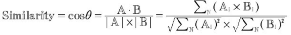 两个新闻的相似度就能通过重合的关键词的tfidf值来衡量了。根据之前所学的知识,几何中夹角余弦可以用来衡量两个向量的方向的差异性,因此在我们的算法中使用夹角余弦来计算新闻关键词的相似度。夹角越小,相似度越高。