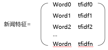 其中word0,1,2……n是新闻的所有关键词,tfidf0,1,2……n则是每个关键词的tfidf值。