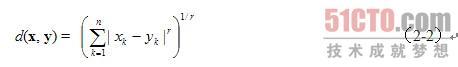 其中,r是距离的度(参数)。取决于r值的不同,一般的闵可夫斯基距离有专用的名称