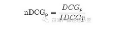 那么在上面百度的例子中:DCG=3+(1+1.26+1.5+0.86)=7.62。但是DCG在评估策略效果的过程中,因为不同搜索模型给出的结果有多有少,仍然会造成无法对比两个模型的效果。为了避免这种情况,我们进一步优化这个指标,成为nDCG(normalize DCG),顾名思义,就是将一个策略的效果标准归一化,以方便不同策略的效果对比。公式如下: