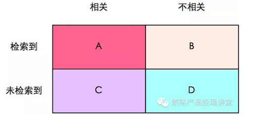 通过是否相关和是否被检索到两个维度的指标,我们可以将检索完成后的内容分为四类,如下图: